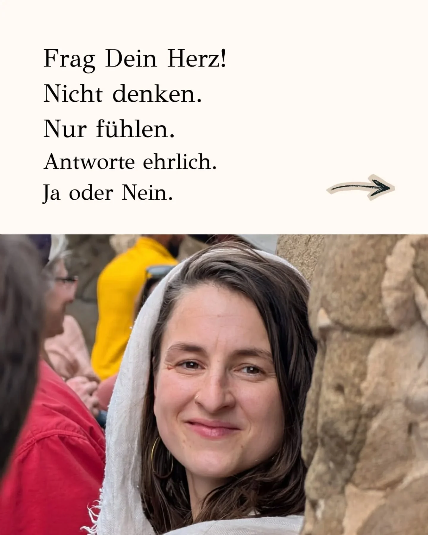 “Josefine hat eine superschöne nahbare Art und man hat das Gefühl auf Augenhöhe zu sein und dass man das wunderschöne Wissen eigentlich schon in sich trägt und es durch ihre Anleitung "anknipsen" kann. Und für mich sehr wichtig auch, sie hat in mir den Gedanken geweckt, dass ich nicht falsch bin, dass meine Empfindungen auch nicht falsch sind. Man kann nicht so in Kürze mit wenigen Worten erzählen, was alles in Bewegung gebracht werden kann. Ich glaube, man kann es nur erfahren.”